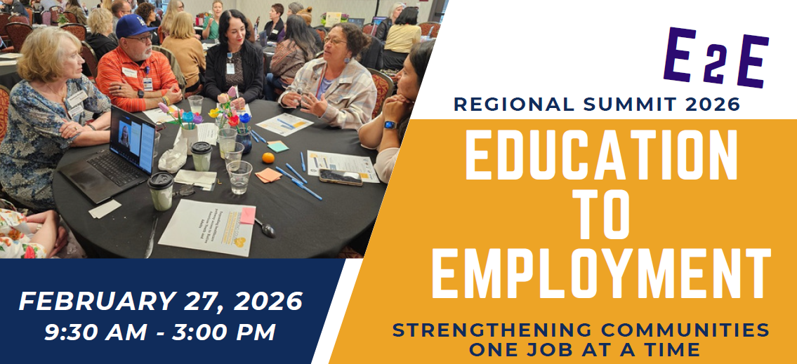 Please join us for the E2E: Education to Employment Regional Summit, a dynamic gathering designed to bring together educators, employers, policymakers, students, and job seekers under one roof. This is your chance to explore emerging workforce needs, see where training gaps remain, and delve into how we can build stronger career pipelines—together. Through shared dialogue and collaboration, we’ll co-create opportunity and propel local prosperity forward.